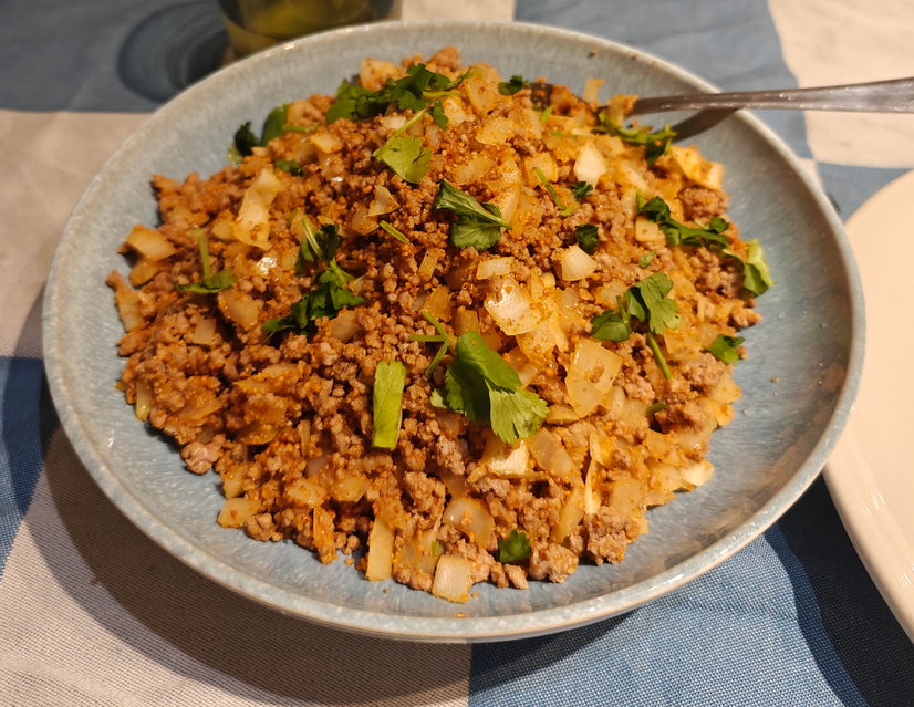 Serve on top of lettuce leaves, such that you can grab and eat it like a taco, and rice on the side.